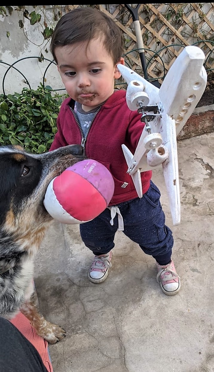 Es nuevamente el MATY que captado en cámara, muestra en forma física a su leal Rocky ( su mascota), como conquistará sus sueños en sus etapas de crecimiento, cuando la torre de control de la vida, le vaya dando los permisos físicos, mentales y espirituales, para volar a sus objetivos. Así con su avión de madera rústica artesanal ,construida por manos angelicales de un anciano, le darán la fuerza y experiencia para recorrer el espacio ,con la seguridad de un aviador de alto vuelo, que domina las alturas y la libertad de la existencia.El Rocky, como su fiel mascota estará asesorando desde su mundo ,de la diversión ,risas y juegos , vayan adornando ésta gran empresa de sueños y realizaciones personales ,que todo humano necesita ,para buscar la felicidad en la humildad de su corazón.......O.I.G.J.